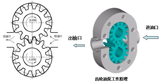 齒輪油泵工作原理:齒輪油泵是用兩個(gè)齒輪互嚙轉(zhuǎn)動(dòng)來工作,對介質(zhì)要求不高。一般的壓齒輪油泵力在6MPa以下,流量較大。 齒輪油泵在泵體中裝有一對回轉(zhuǎn)齒輪,一個(gè)主動(dòng),一個(gè)被動(dòng),依靠兩齒輪的相互嚙合,把泵內(nèi)的整個(gè)工作腔分兩個(gè)獨(dú)立的部分。A為吸入腔,B為排出腔。齒輪油泵在運(yùn)轉(zhuǎn)時(shí)主動(dòng)齒輪帶動(dòng)被動(dòng)齒輪旋轉(zhuǎn),當(dāng)齒輪從嚙合到脫開時(shí)在吸入側(cè)(A)就形成局部真空,液體被吸入。被吸入的液體充滿齒輪的各個(gè)齒谷而帶到排出側(cè)(B),齒輪進(jìn)入嚙合時(shí)液體被擠出,形成高壓液體并經(jīng)泵排出口排出泵外。